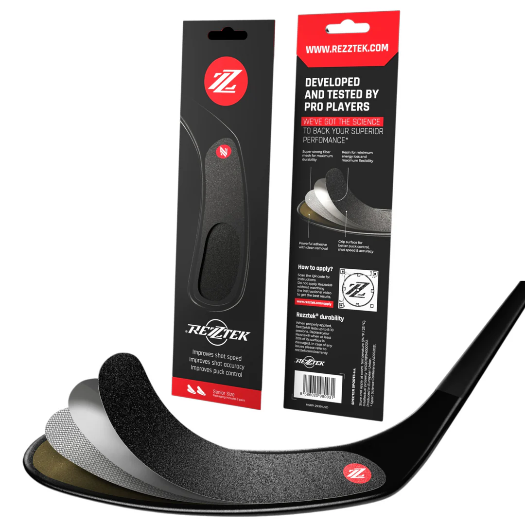 High-performance grip for your blade. Packaging includes 2 pairs (For 2 senior Custom Hockey Sticks) of Rezztek® grips. Recommended for all players older than 13, using an intermediate or adult hockey stick.